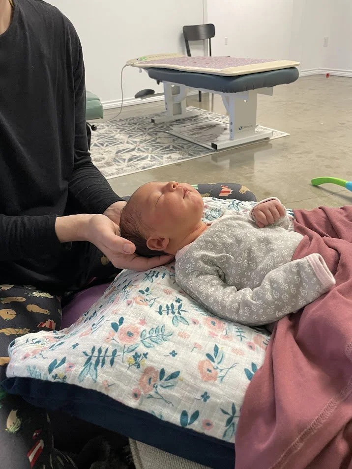 No clicks and pops here! Adjustments to an infant’s spine are slow and gentle, only using the amount of force required to check the ripeness of a tomato. Whether your baby was born vaginally or via Cesarean section, the birth process is one of the most potentially traumatic events in a human’s life. Restricted joints of the spine can create discomfort with the normal movements required in latching and nursing, sitting in carriers and diaper changes. Remember, the chiropractic adjustment is not just for pain but helps the nervous system communicate more efficiently. When the brain is not communicating properly with the body infants might experience symptoms of reflux, colic, gas, constipation, retained reflexes or not reaching developmental milestones on time.